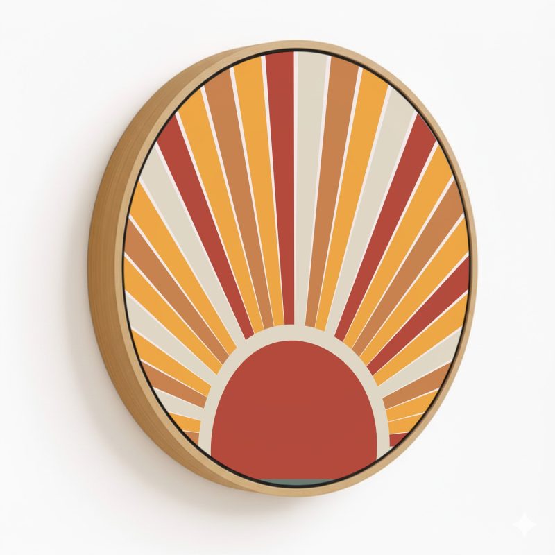 Framed Art | Contemporary mid century boho abstract #478 - Circular Wooden Frame | 50+ Frame Styles • Museum Quality • Made in India
