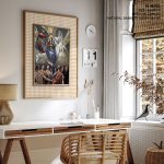 You can wipe it off with microfiber cloth or damp cloth with water and soft soap (shampoo). If your frame has canvas without glass, we recommend simply dust using a dry soft and fine brush. Refrain from using wood polish or cleaning sprays since this could potentially create moisture and possibly damage the artwork.