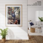 - Material: You can choose between different print mediums (Glicee paper or Canvas) and 40+ framing options that you can see on the website. Any order above 18x24 inches is processed in pinewood since synthetic wood is not able to bear its load. Wherever applicable, acrylic glass is used instead of normal glass, for its ease of handling and recyclability.