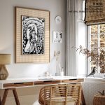 - Material: You can choose between different print mediums (Glicee paper or Canvas) and 40+ framing options that you can see on the website. Any order above 18x24 inches is processed in pinewood since synthetic wood is not able to bear its load. Wherever applicable, acrylic glass is used instead of normal glass, for its ease of handling and recyclability.