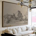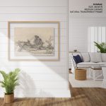 Wall Decor | Cottages and Farm Buildings with a Man Sketching by Rembrandt van Rijn (c. 1645) | Custom Size & Frame • Ready to Hang • Made in India • Eco-Friendly