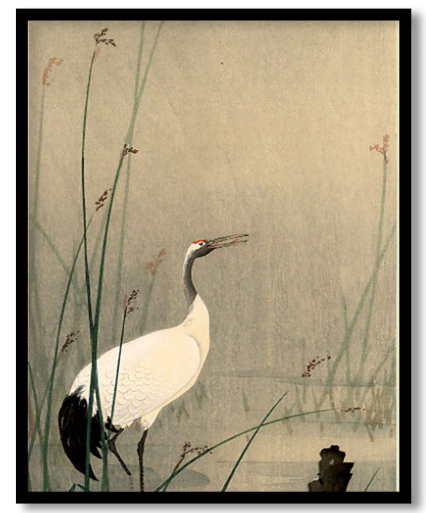 Framed Art | Crane in small water by Ohara Koson (Date Unknown) | 50+ Frame Styles • Museum Quality • Made in India