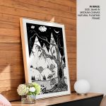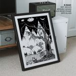 - Material: You can choose between different print mediums (Glicee paper or Canvas) and 40+ framing options that you can see on the website. Any order above 18x24 inches is processed in pinewood since synthetic wood is not able to bear its load. Wherever applicable, acrylic glass is used instead of normal glass, for its ease of handling and recyclability.