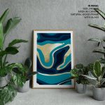 Wall Art | Crinkled gold blue contemporary modern abstract #12 | Small to XXXL Sizes • 50+ Framing Styles • Non Toxic