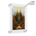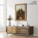 - Material: You can choose between different print mediums (Glicee paper or Canvas) and 40+ framing options that you can see on the website. Any order above 18x24 inches is processed in pinewood since synthetic wood is not able to bear its load. Wherever applicable, acrylic glass is used instead of normal glass, for its ease of handling and recyclability.