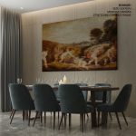 You can wipe it off with microfiber cloth or damp cloth with water and soft soap (shampoo). If your frame has canvas without glass, we recommend simply dust using a dry soft and fine brush. Refrain from using wood polish or cleaning sprays since this could potentially create moisture and possibly damage the artwork.