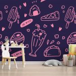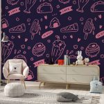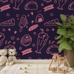Non-Toxic Wallpaper | Cute colorful seamless food and drink line drawing | 14+ Textures • Free Installation • Made in India