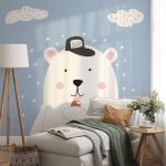 Wallpaper | Cute kids nursery bear with cap | Non Toxic, No VOC, 14+ Textures, Free Installation