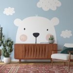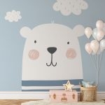 Wallpaper | Cute kids nursery white bear | Non Toxic, No VOC, 14+ Textures, Free Installation