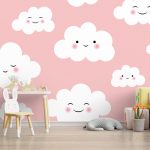Cute smiling white pink clouds - Non Toxic Wall Paper Decor, Home & Office Decor - BestOfBharat