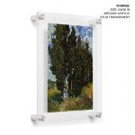 - Material: You can choose between different print mediums (Glicee paper or Canvas) and 40+ framing options that you can see on the website. Any order above 18x24 inches is processed in pinewood since synthetic wood is not able to bear its load. Wherever applicable, acrylic glass is used instead of normal glass, for its ease of handling and recyclability.