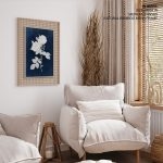 Wall Decor | Damask Rose, York and Lancaster - Indigo Pressed | Custom Size & Frame • Ready to Hang • Made in India • Eco-Friendly