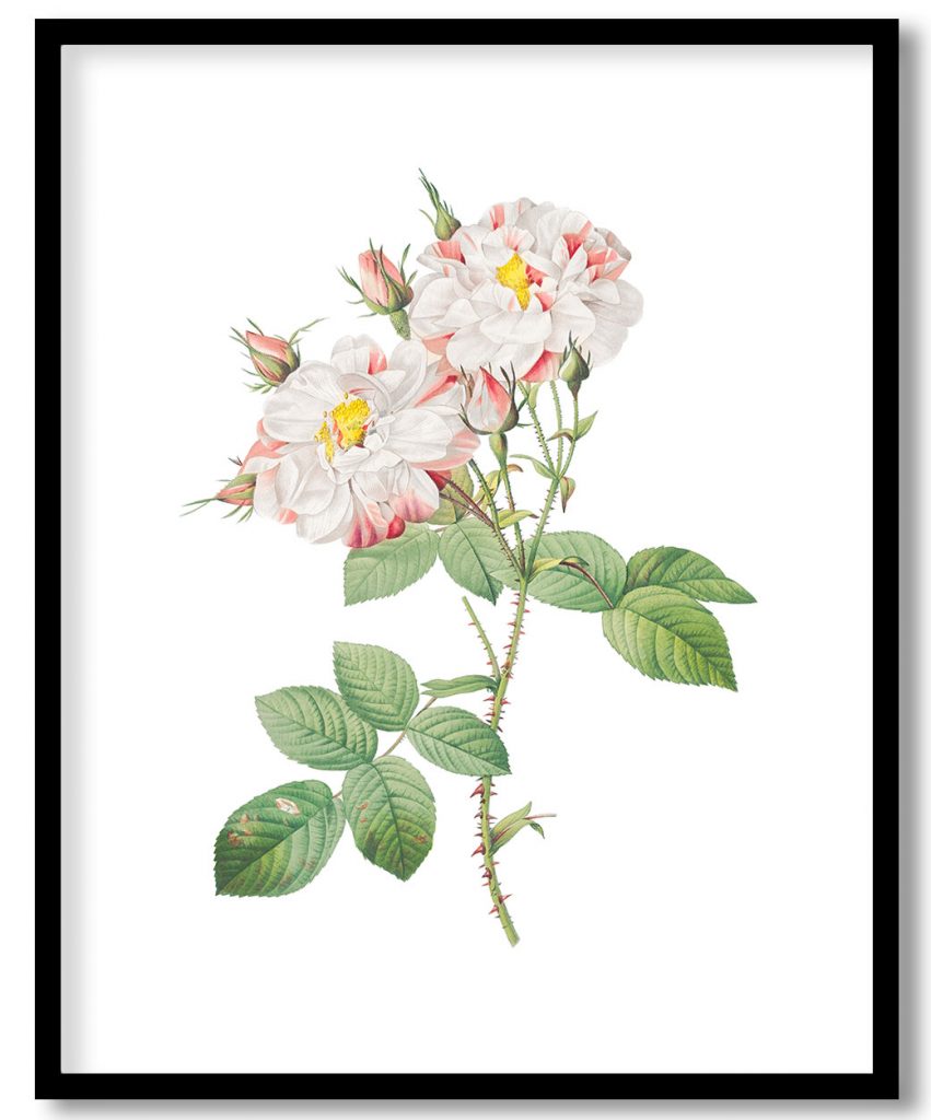 Wall Art | Damask Rose, York and Lancaster Rose also known as Rosa damascena variegata from Les Roses (1817–1824) | Small to XXXL Sizes • 50+ Framing Styles • Non Toxic