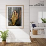 - Material: You can choose between different print mediums (Glicee paper or Canvas) and 40+ framing options that you can see on the website. Any order above 18x24 inches is processed in pinewood since synthetic wood is not able to bear its load. Wherever applicable, acrylic glass is used instead of normal glass, for its ease of handling and recyclability.