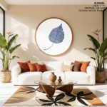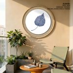 Framed Art | Dark Blue Botanical leaf #1 - Circular Wooden Frames | 50+ Frame Styles • Museum Quality • Made in India