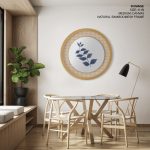 Dark Blue Botanical Leaves #3 - Circular Wooden Frames - Wall Art, Hanging Wall Decor, Home Decor - BestOfBharat