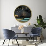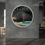 Dark golden tree landscape #542 - Circular Wooden Frame - Wall Art, Hanging Wall Decor, Home Decor - BestOfBharat