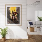 - Material: You can choose between different print mediums (Glicee paper or Canvas) and 40+ framing options that you can see on the website. Any order above 18x24 inches is processed in pinewood since synthetic wood is not able to bear its load. Wherever applicable, acrylic glass is used instead of normal glass, for its ease of handling and recyclability.