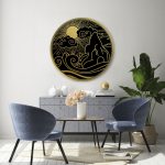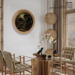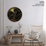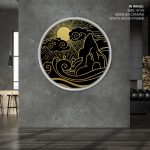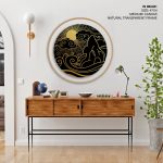 Wall Decor | Dark minimal golden cloud sun landscape - Circular Wooden Frame | Custom Size & Frame • Ready to Hang • Made in India • Eco-Friendly