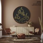 Framed Art | Dark minimal golden flames - Circular Wooden Frame | 50+ Frame Styles • Museum Quality • Made in India