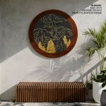 Wall Art | Dark minimal golden rising japanese hills - Circular Wooden Frame | Small to XXXL Sizes • 50+ Framing Styles • Non Toxic