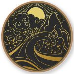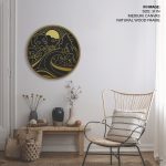 Dark minimal golden sun landscape - Circular Wooden Frame