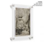 - Material: You can choose between different print mediums (Glicee paper or Canvas) and 40+ framing options that you can see on the website. Any order above 18x24 inches is processed in pinewood since synthetic wood is not able to bear its load. Wherever applicable, acrylic glass is used instead of normal glass, for its ease of handling and recyclability.