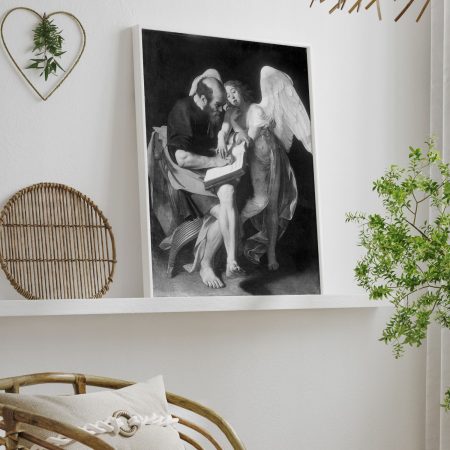 Wall Art | Der hl. Matthäus schreibt sein Evangelium mit Hilfe eines Engels by Michelangelo (1602) | Small to XXXL Sizes • 50+ Framing Styles • Non Toxic