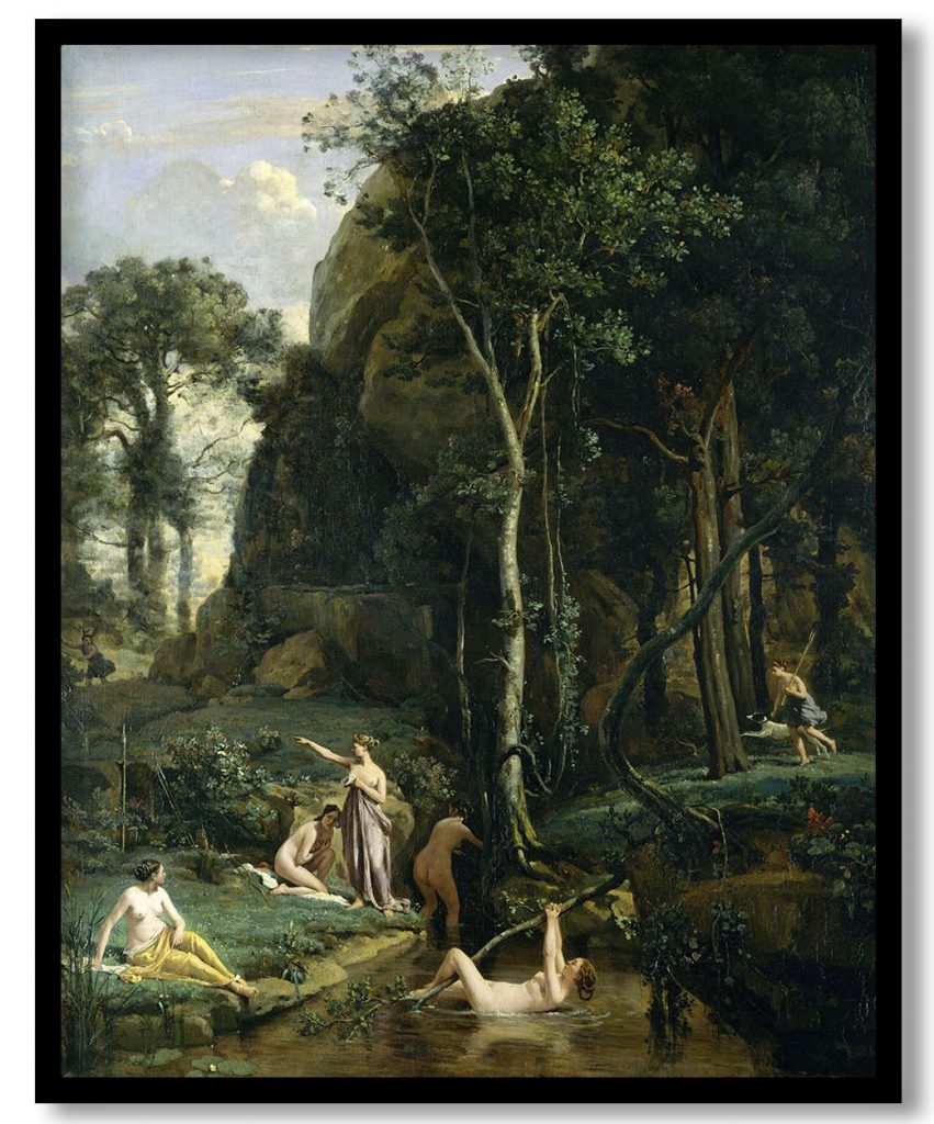 Framed Art | Diana and Actaeon (Diana Surprised in Her Bath) by Jean Baptiste Camille Corot (1836) | 50+ Frame Styles • Museum Quality • Made in India