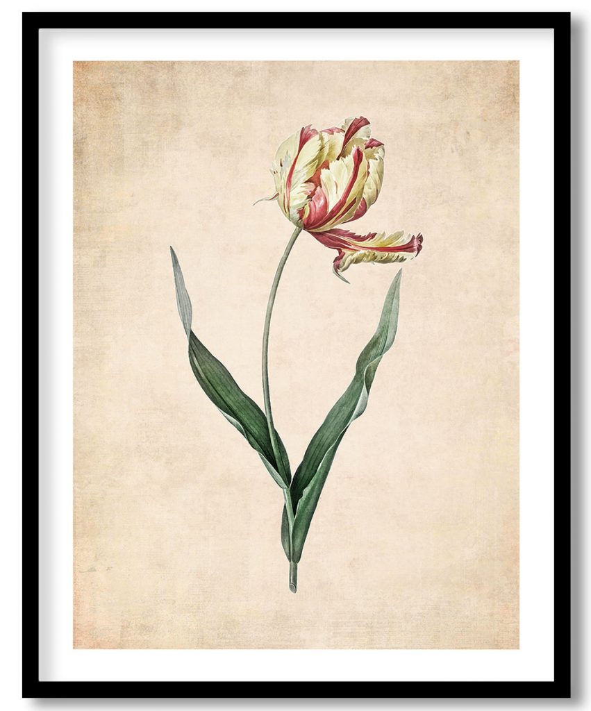 Wall Decor | Didier's tulip #2 - Pressed Vintage Botanical | Custom Size & Frame • Ready to Hang • Made in India • Eco-Friendly
