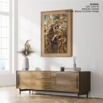 - Material: You can choose between different print mediums (Glicee paper or Canvas) and 40+ framing options that you can see on the website. Any order above 18x24 inches is processed in pinewood since synthetic wood is not able to bear its load. Wherever applicable, acrylic glass is used instead of normal glass, for its ease of handling and recyclability.