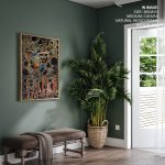 - Material: You can choose between different print mediums (Glicee paper or Canvas) and 40+ framing options that you can see on the website. Any order above 18x24 inches is processed in pinewood since synthetic wood is not able to bear its load. Wherever applicable, acrylic glass is used instead of normal glass, for its ease of handling and recyclability.