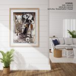 - Material: You can choose between different print mediums (Glicee paper or Canvas) and 40+ framing options that you can see on the website. Any order above 18x24 inches is processed in pinewood since synthetic wood is not able to bear its load. Wherever applicable, acrylic glass is used instead of normal glass, for its ease of handling and recyclability.