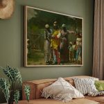 You can wipe it off with microfiber cloth or damp cloth with water and soft soap (shampoo). If your frame has canvas without glass, we recommend simply dust using a dry soft and fine brush. Refrain from using wood polish or cleaning sprays since this could potentially create moisture and possibly damage the artwork.