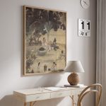 You can wipe it off with microfiber cloth or damp cloth with water and soft soap (shampoo). If your frame has canvas without glass, we recommend simply dust using a dry soft and fine brush. Refrain from using wood polish or cleaning sprays since this could potentially create moisture and possibly damage the artwork.