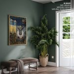 - Material: You can choose between different print mediums (Glicee paper or Canvas) and 40+ framing options that you can see on the website. Any order above 18x24 inches is processed in pinewood since synthetic wood is not able to bear its load. Wherever applicable, acrylic glass is used instead of normal glass, for its ease of handling and recyclability.