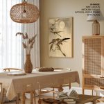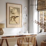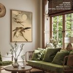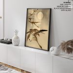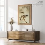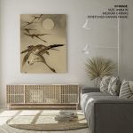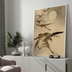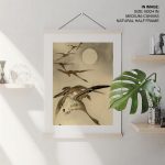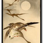 Eight White fronted Geese in Flight; full Moon behind by Ohara Koson (Date Unknown)