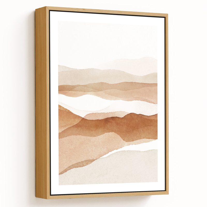 Framed Art | Enticing buff watercolor layered mountains #435 | 50+ Frame Styles • Museum Quality • Made in India
