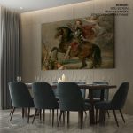 You can wipe it off with microfiber cloth or damp cloth with water and soft soap (shampoo). If your frame has canvas without glass, we recommend simply dust using a dry soft and fine brush. Refrain from using wood polish or cleaning sprays since this could potentially create moisture and possibly damage the artwork.