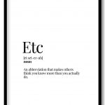 Wall Decor | Etc - Funny Dictionary Definition - Office series - Wall Decor, Framed Art for office, cafe, home, restaurant, bar - Choose size & custom frame color | Custom Size & Frame • Ready to Hang • Made in India • Eco-Friendly