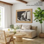 - Material: You can choose between different print mediums (Glicee paper or Canvas) and 40+ framing options that you can see on the website. Any order above 18x24 inches is processed in pinewood since synthetic wood is not able to bear its load. Wherever applicable, acrylic glass is used instead of normal glass, for its ease of handling and recyclability.