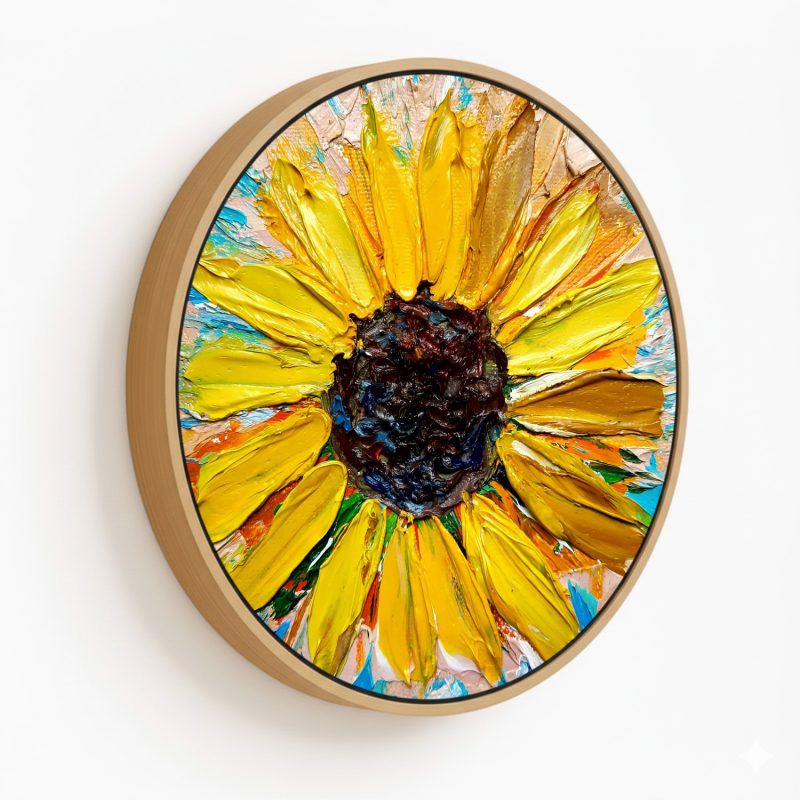 Framed Art | Extant sunflower - Circular Wooden Frame | 50+ Frame Styles • Museum Quality • Made in India