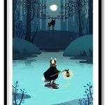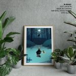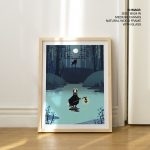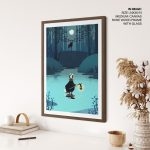 Wall Art | Fantasy forest moon night fox in a river against deer | Small to XXXL Sizes • 50+ Framing Styles • Non Toxic