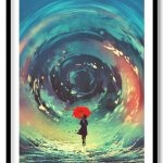 Wall Art | Fantasy girl with parasol making water swirling | Small to XXXL Sizes • 50+ Framing Styles • Non Toxic