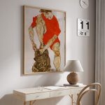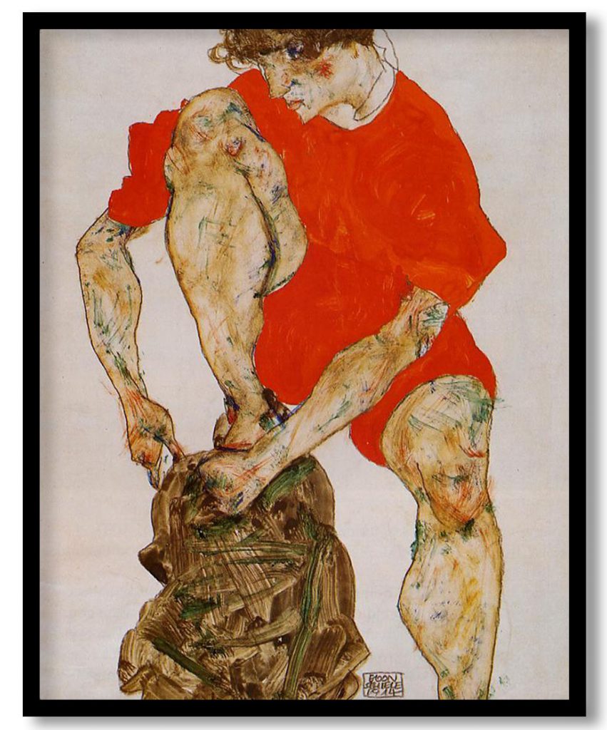 Framed Art | Female Model in Bright Red Jacket and Pants by Egon Schiele (1914) | 50+ Frame Styles • Museum Quality • Made in India