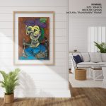 - Material: You can choose between different print mediums (Glicee paper or Canvas) and 40+ framing options that you can see on the website. Any order above 18x24 inches is processed in pinewood since synthetic wood is not able to bear its load. Wherever applicable, acrylic glass is used instead of normal glass, for its ease of handling and recyclability.