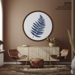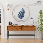 Fern Ink Blue Leaves #113 - Circular Wooden Frames - Wall Art, Hanging Wall Decor, Home Decor - BestOfBharat
