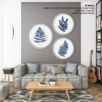 Fern Ink Blue Leaves Framed Wall Art (Set of 3), Nature Art, Minimalist, Botanical