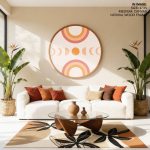 Wall Art | Figurative bohemian minimal abstract #306 - Circular Wooden Frame | Small to XXXL Sizes • 50+ Framing Styles • Non Toxic