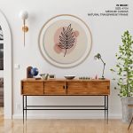 Wall Decor | Figurative botanic leaves abstract #164 - Circular Wooden Frame | Custom Size & Frame • Ready to Hang • Made in India • Eco-Friendly